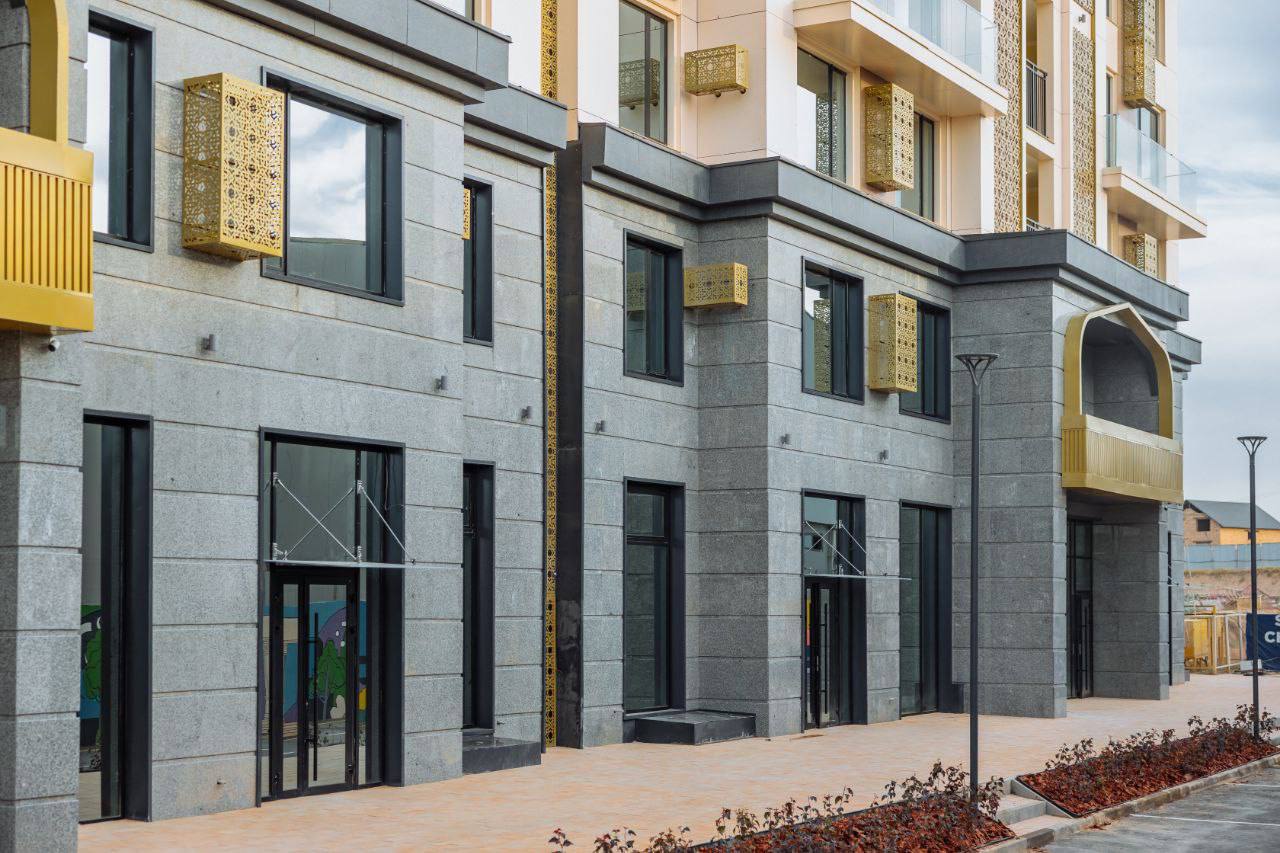 Комплекс состоит из зданий переменной этажности — 9, 12 и 16 этажей, выполненных в монолитно-каркасной технологии. Фасады украшены традиционными восточными орнаментами и выполнены в спокойной цветовой гамме, что гармонично сочетается с окружающей природой. Использование HPL-панелей и декоративных решеток придает зданиям современный и эстетичный вид.
